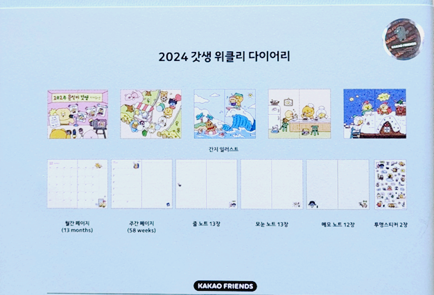 다이어리 뒷면에는 구성이 어떻게 되어 있는지 나와있었고